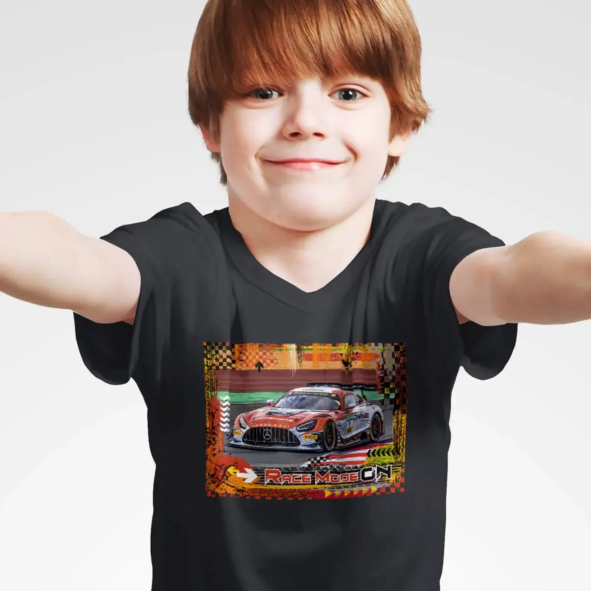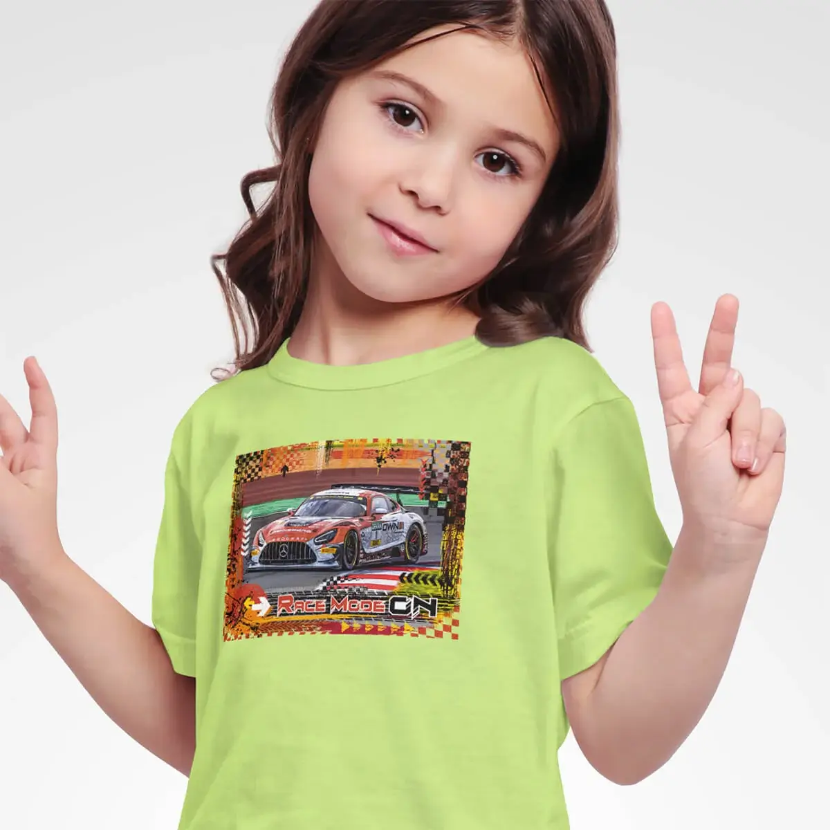 The “AMG-Mercedes GT3” children’s T-shirt is a hit for little racing fans who dream of wearing the starting number 1 – just like the impressive AMG Mercedes GT3 from the successful Landgraf motorsport team! In the powerful colors Apple Green, Gold, Red and Black, this shirt brings the look of the race track directly into everyday life.