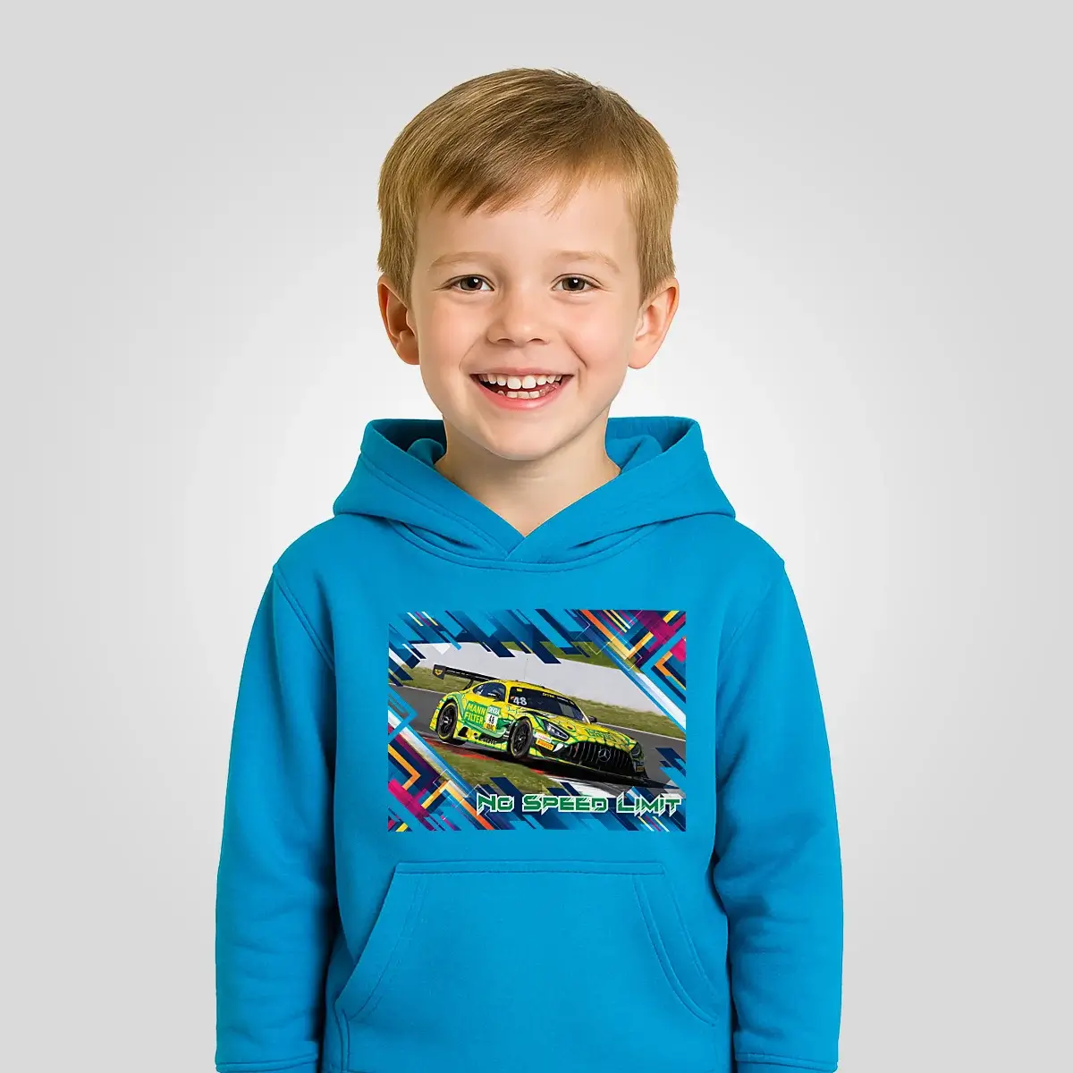 Dieser Hoodie ist ein echtes Statement für junge Racing-Fans, die Motorsport nicht nur erleben, sondern tragen wollen. Auf der Brust strahlt ein fotorealistischer, speziell designter Aufdruck des legendären Mercedes-AMG GT3 „Mamba“ vom Team MANN-FILTER mit der Startnummer #48 – ein Rennwagen, der durch sein ikonisches Schlangen-Design und seine kompromisslose Performance zur Kultfigur geworden ist. Damit wird dieser Hoodie zu einem einzigartigen Must-have, das die Faszination einer Motorsport-Ikone in den Alltag bringt.